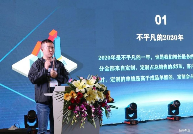 华灯璀璨的开场仪式,点燃了现场如火如荼的气氛。多宝电竞集团营销总经理陈玉伟先生对晚会进行了主题发言,他对2020年的营销工作进行了总结,并着重从营销工作部署、重点项目开展、产品整合、拎包帮扶、渠道运营和移动+定制整装优势等方面对2021年的营销工作做了全面的统筹规划。同时,他还讲解了“美国梦凯莎床垫”新品的产品工艺、市场优势、产品定位,使经销商对我们的新产品拥有更深入的认识和了解。